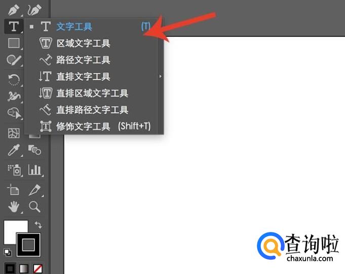 画板创建完成之后,在左侧工具栏中选择“文字工具”