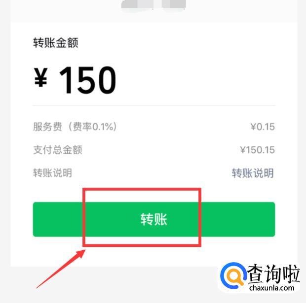 确定转账的金额和手续费无误,点击转账。