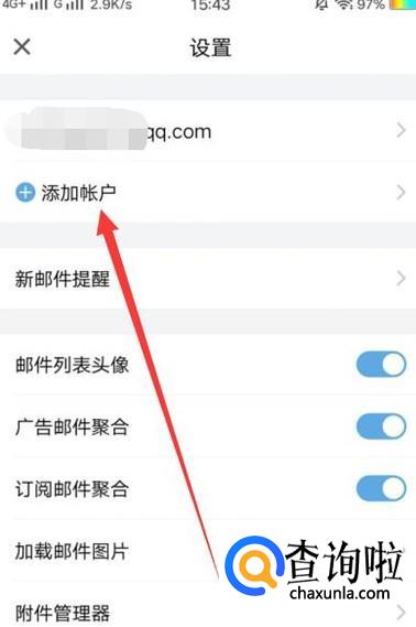 进入之后,点击“添加账户”,进入下一页面,如图所示。