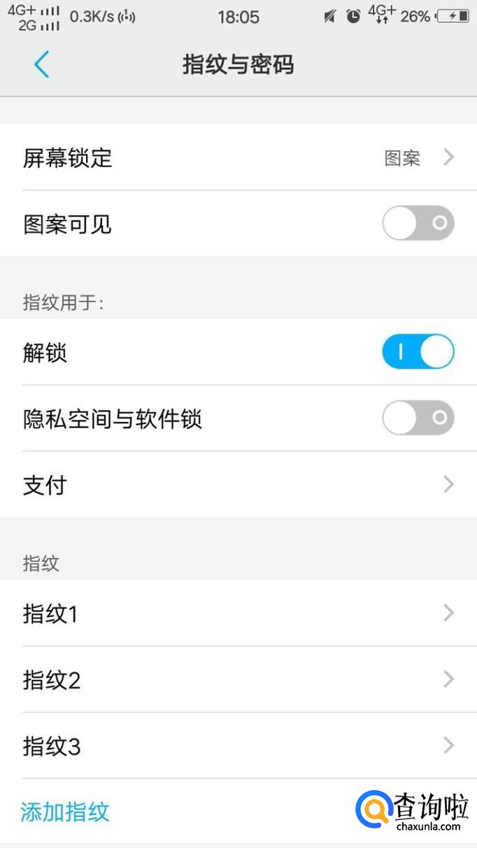 然后进入到相关页面以后,我们手动找到指纹与密码,并且点击它。