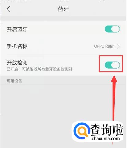 蓝牙打开之后我们将开放检测打开,以便于我们搜索蓝牙设备。