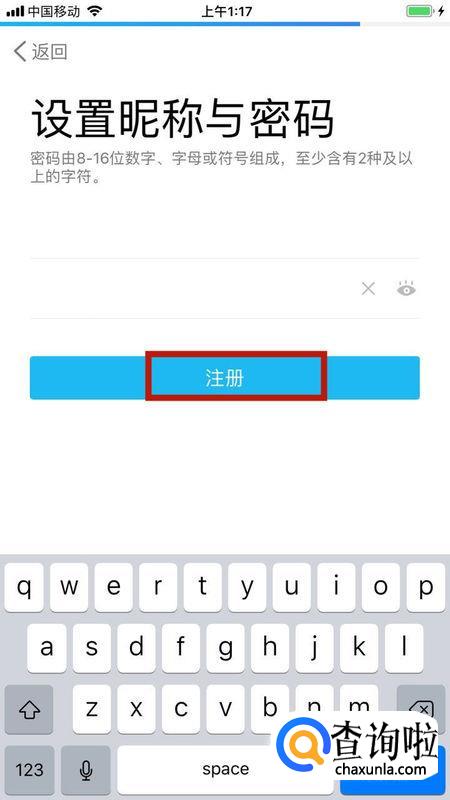 最后我们设置好新号的昵称和密码,然后点击下方的“注册”,就完成了。