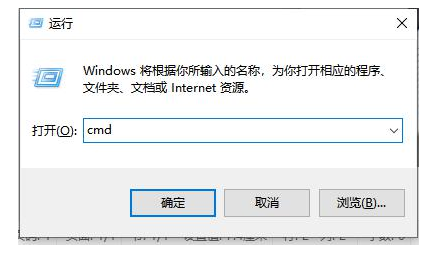 首先先将U盘插入电脑,再按下键盘的win+R键,然后就会弹出一个运行框,我们在其中输入【cmd】,接着点击确定。