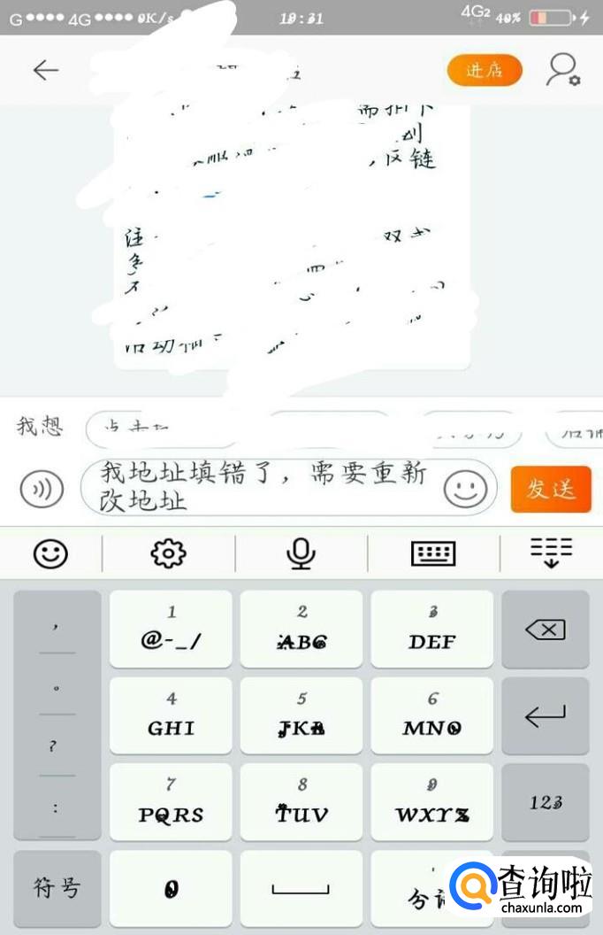 然后,我们就跟淘宝客服说,我们的地址填错了,将内容发送出去,当淘宝客服收到后,就会给你发了一个链接。