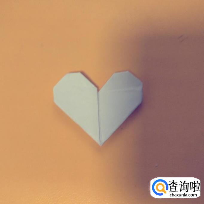 再次翻过折纸,将上面的尖角以及左右两侧的尖角都向后捏折一点,心形就折好了。