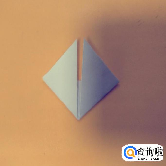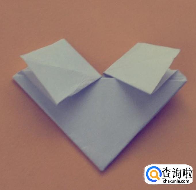 翻过折纸,将上面的两个尖角分别向下压折成四方形。