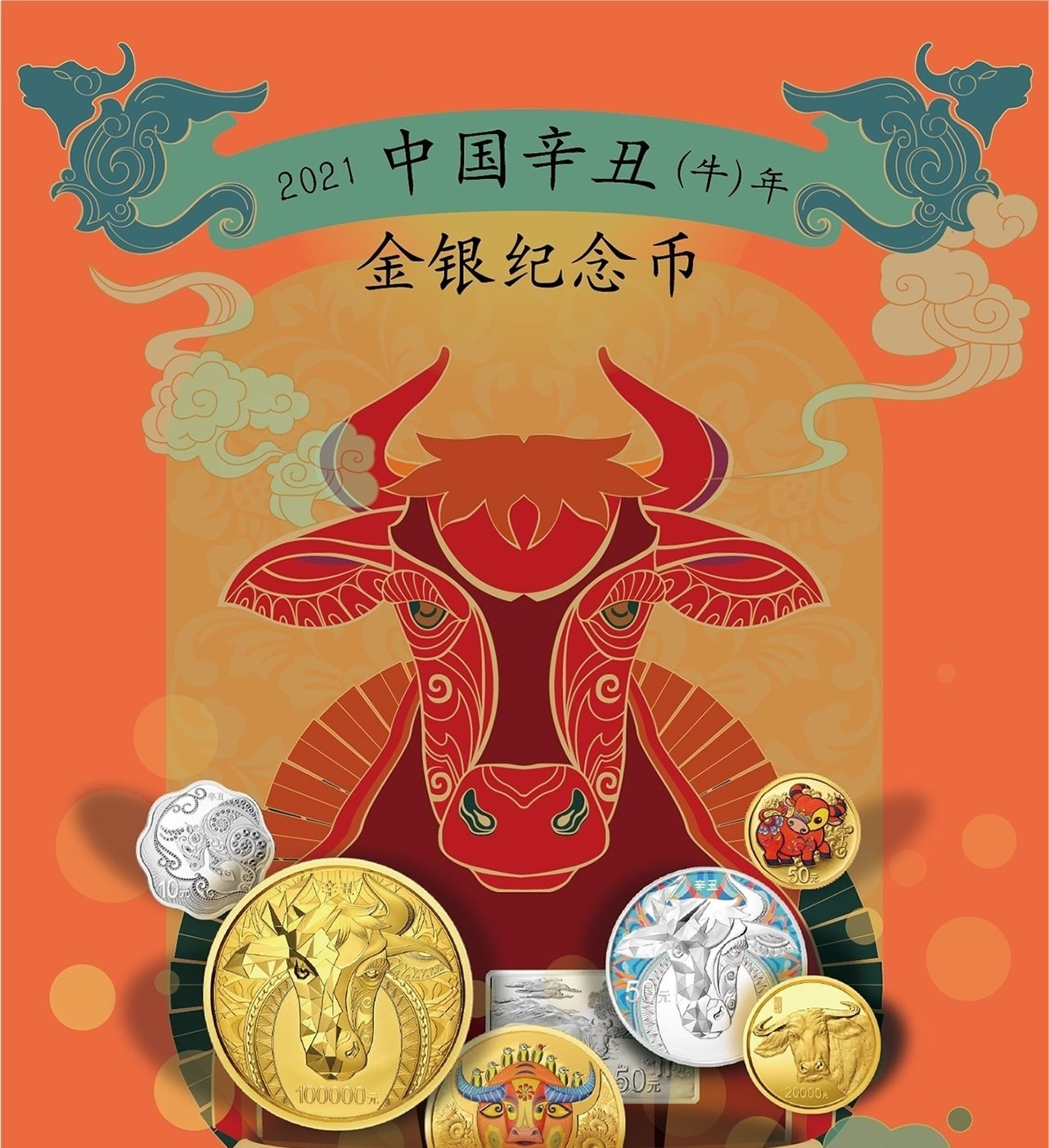 生肖系列贵金属纪念币是传统文化与时代特色相结合的产物。该系列纪念币除了对生肖造型的展示外,还融合了多种传统民俗文化精髓,丰富了传统生肖文化的时代特点。2021中国辛丑(牛)年金银纪念币是中国人民银行为迎接中国农历牛年到来而于2020年10月15日发行的一套贵金属纪念币。分别由沈阳造币有限公司、上海造币有限公司和深圳国宝造币有限公司铸造,中国金币总公司总经销,预计一月底左右可以进行预约。全套共15枚,其中金质纪念币9枚,银质纪念币6枚,均为中华人民共和国法定货币。
