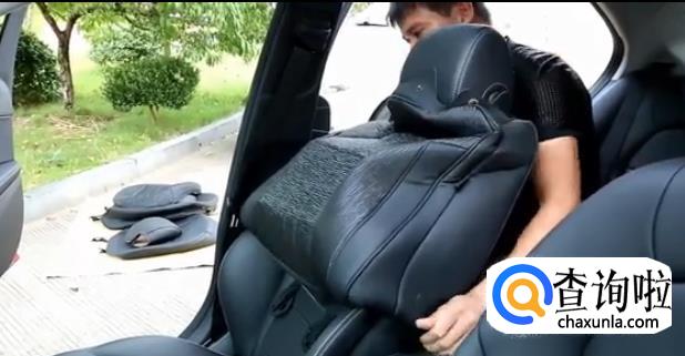 拉开后排靠垫拉链,套上座椅,拉上拉链。