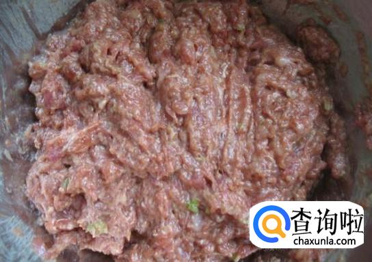 根据自己的口味,将买来的肉馅和好,如图所示。
