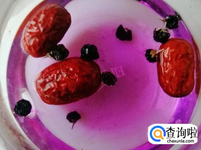 等红枣泡的差不时候打开杯盖,尝一下水温不是很热的时候加入备好的黑枸杞,水温在四五十度时候放黑枸杞是最好的,这时候黑枸杞放入杯中,慢慢释放出花青素,泡出的水颜色好看而且还营养。
