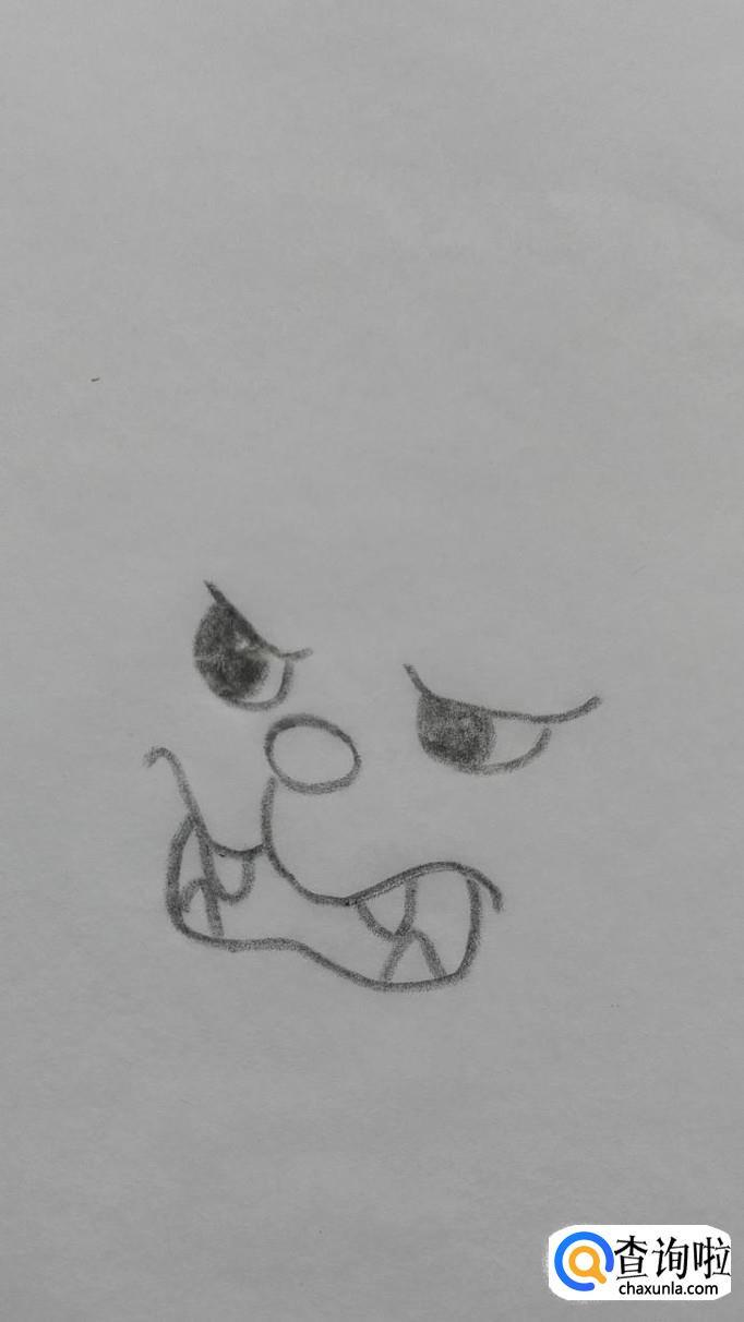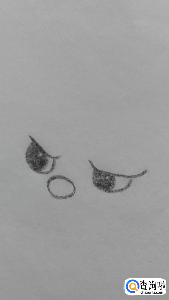 用半圆画出老虎的眼睛,用椭圆画出老虎的眼球,涂成黑色,用椭圆画出老虎的鼻子。如图所示: