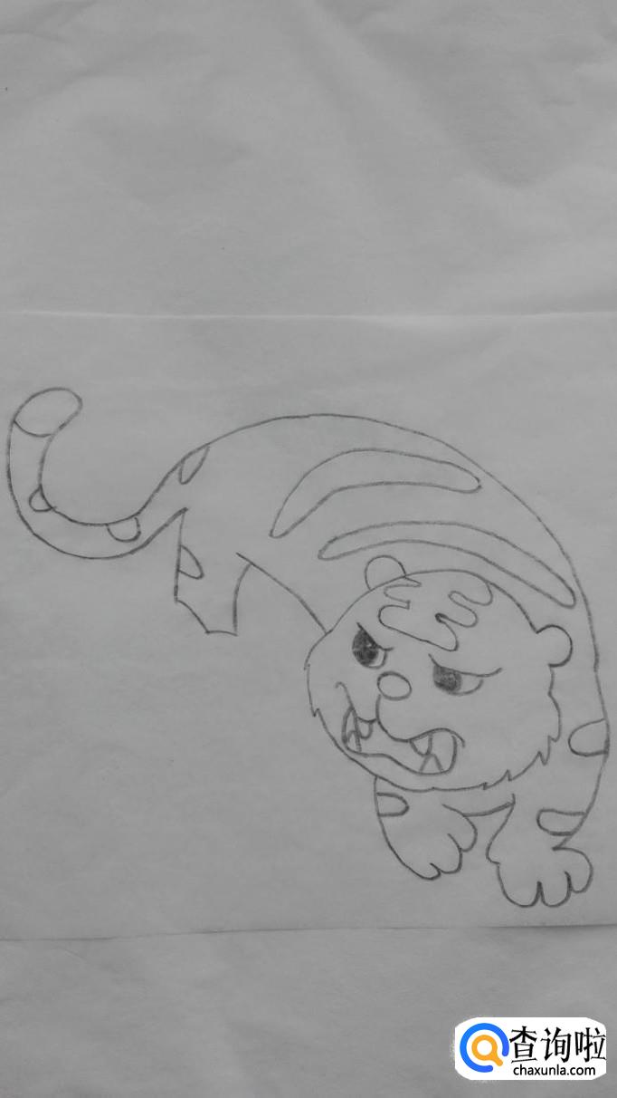 用封闭的曲线画出老虎身体上的条纹,用封闭的曲线画出老虎四肢上的条纹。如图所示: