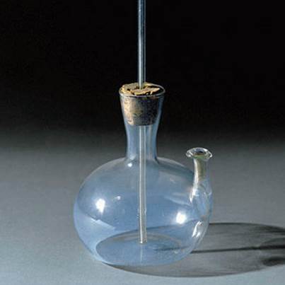 第一只温度计是一根一端敞口的玻璃管,另一端带有核桃大的玻璃泡。使用时先给玻璃泡加热,然后把玻璃管插入水中。随着温度的变化,玻璃管中的水面就会上下移动,根据移动的多少就可以判定温度的变化和温度的高低。
