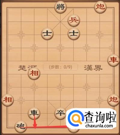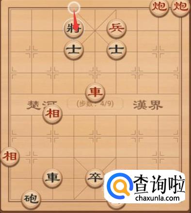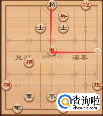 我们的红方先走第一手,当然了红方想要获得胜利,第一手当然需要将军了,红方这里就是车左走4步,进行将军,如图所示。