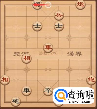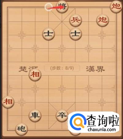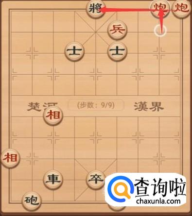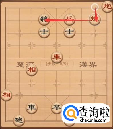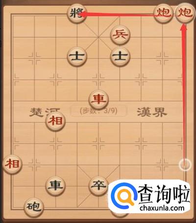 接着红方这里还是需要将军,所以就是另外一个炮上来一步,再次将军,如图所示。