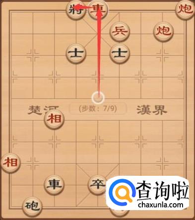 我们接着来看红方的走法,红方这里就是车上走7步,再次的车将军,如图所示。