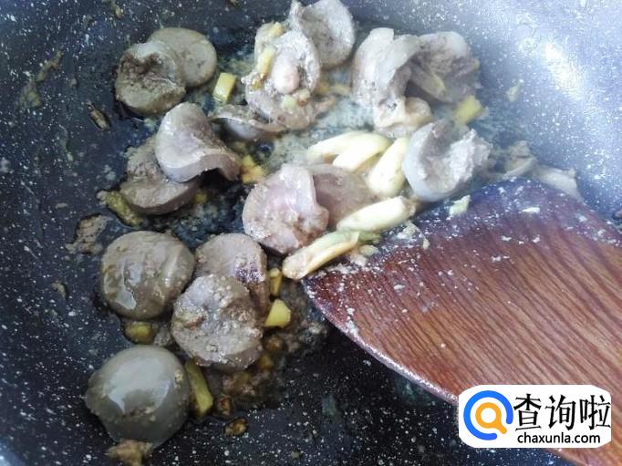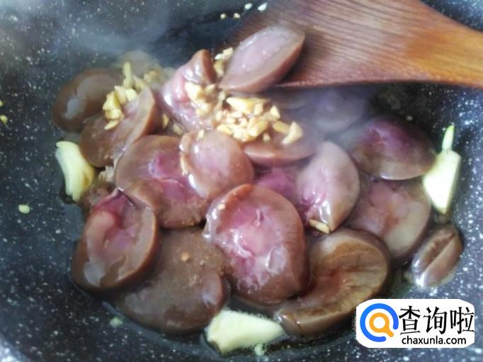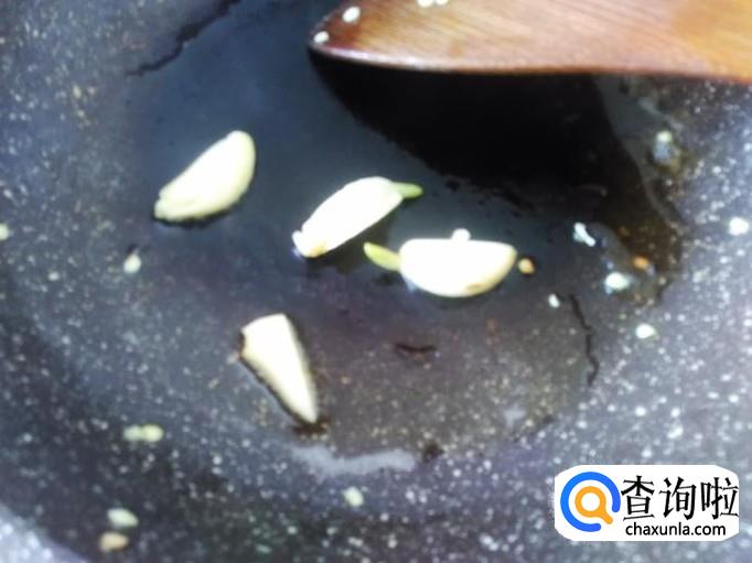 再开火下油,放蒜米进去爆香,羊腰下锅。