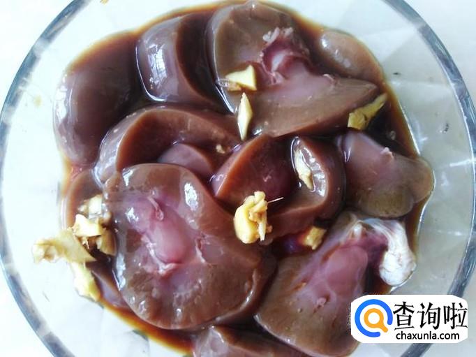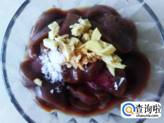 把羊腰清洗理干净,然后切成薄片,加适量的盐、姜蓉、1勺生抽、1勺料酒腌制几分钟。