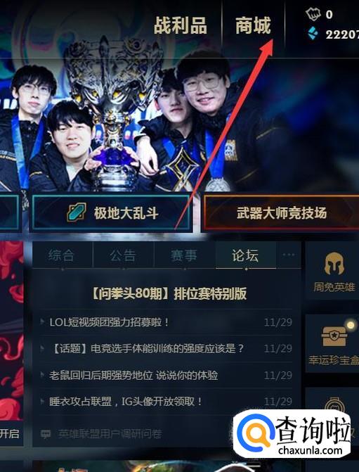 首先大家要做的就是登录到英雄联盟的客户端,如下图,登录到客户端的首页。
