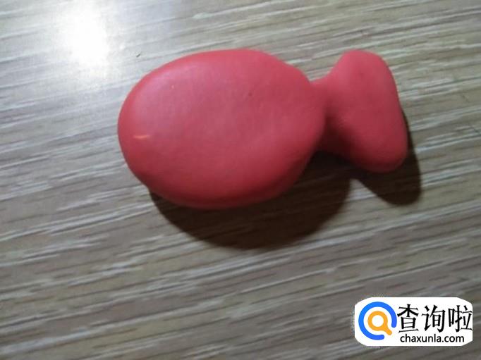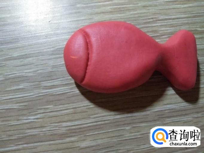 首先选择软陶中的一种颜色,比如红色。将其先捏成鱼的模样。