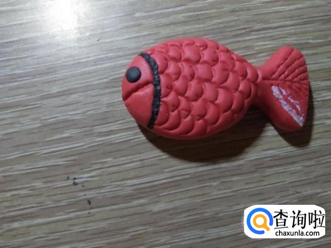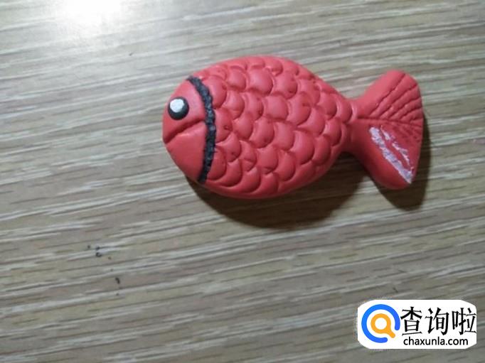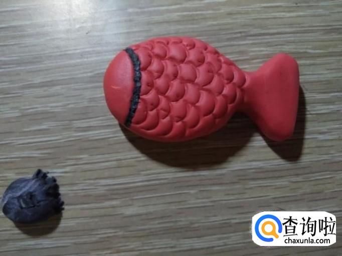 然后用黑色的软陶将小鱼头部的沟壑填充满。