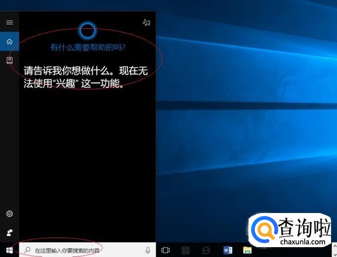 启动Windows 10操作系统,如图所示。点击任务栏搜索框,开始使用Cortana(小娜)智能语音助理。