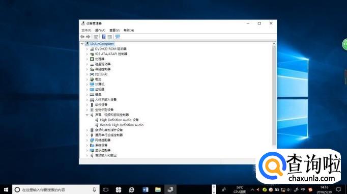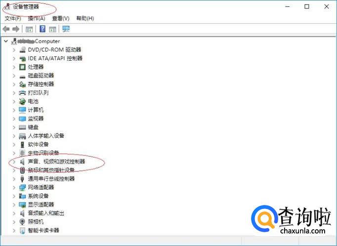 弹出"设备管理器"对话框,如图所示。展开树形目录结构,点击"声音、视频和游戏控制器"项。