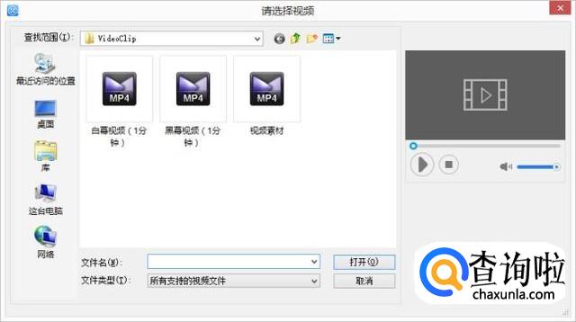弹窗里查找视频的位置,找到视频后选中,随后选择打开。