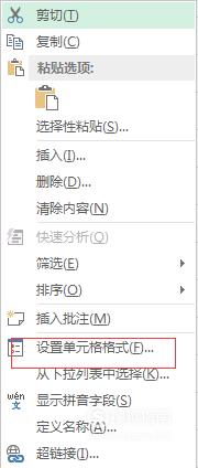 在单元格上点击鼠标右键,然后从右键菜单中选择“设置单元格式”。