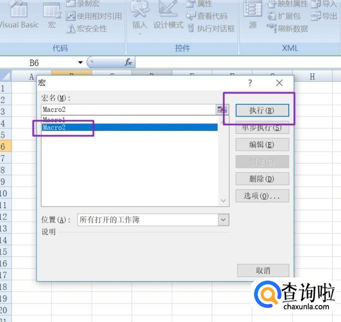 弹出的界面,我们选择刚刚录制的宏,然后点击执行;