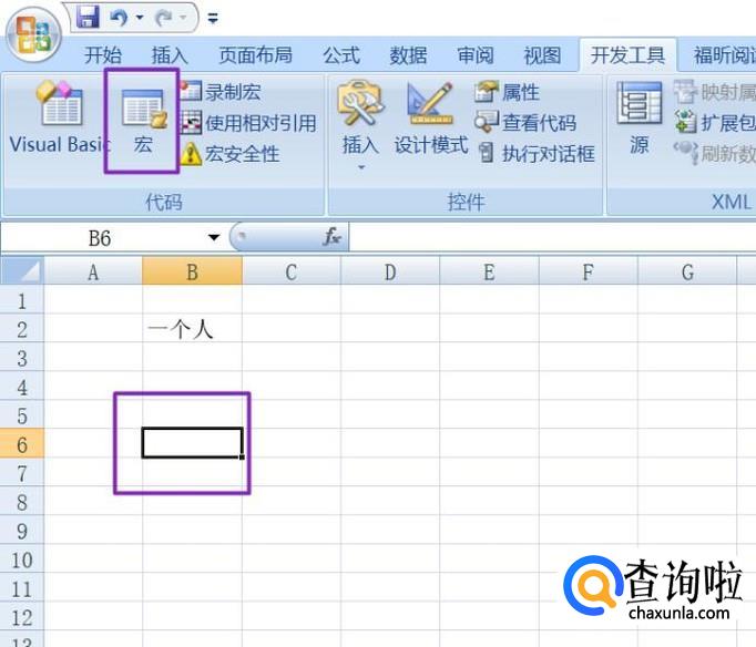 然后我们选择表格中的任意单元格,之后点击工具栏中的宏;