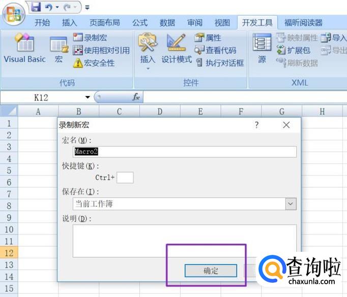 弹出的界面,宏名我们不做更改,然后点击确定;