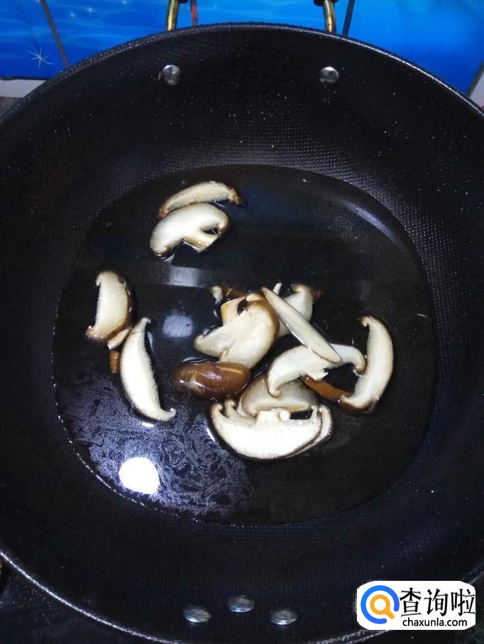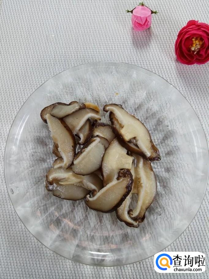 准备适量的香菇,洗净后切成片,放入锅中焯水,焯好之后,捞出备用。