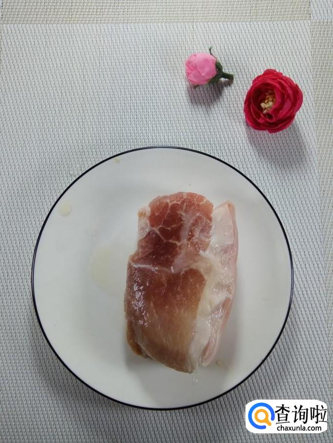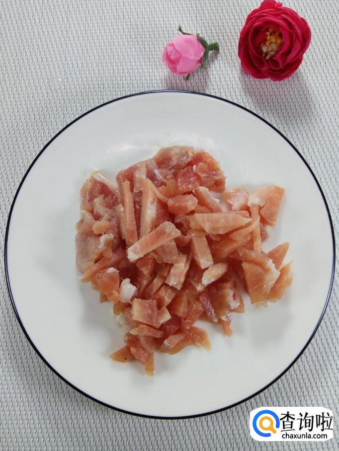 准备适量五花肉,用清水洗净后,切成肉丝,放入盘中备用。