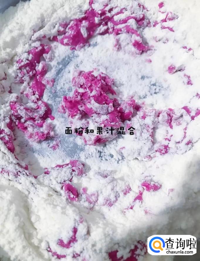 然后把面粉和果汁混合均匀,如下图所示。