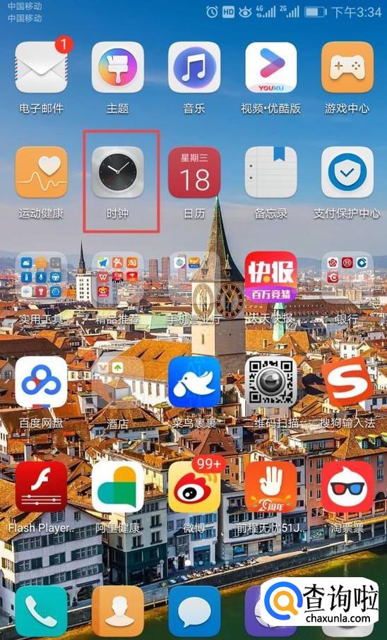 首先,我们打开我们的手机,然后我们点击手机桌面上的时钟;