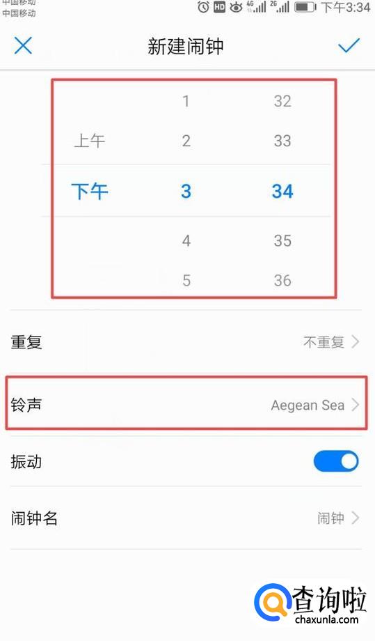 弹出的界面,我们将时间调整好,之后我们点击铃声;