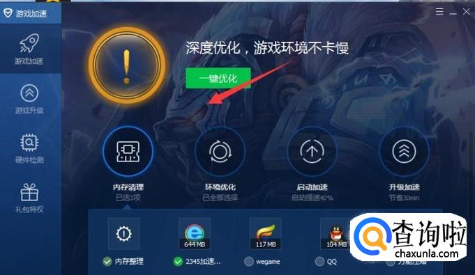 之后找到自己的腾讯管家里面的游戏加速点开之后,深化优化就可以了。不过在这里我提醒大家用无线网络玩游戏本身无线网络是不稳定的,所以玩英雄联盟会出现跳频的情况,建议大家玩游戏一定要用网线,尤其是你是骨灰玩家,无线网络必须换成有线网络。