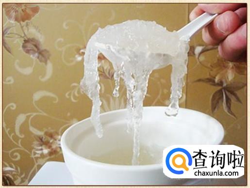 泡过后在灯光下看,真的燕窝不是全透明的,而是半透明的感觉,假的燕窝看起来晶莹剔透的。