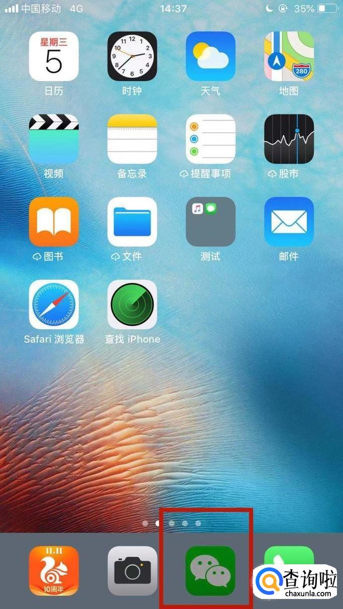 首先在我们的手机桌面上找到微信并点击它,如下图所示。