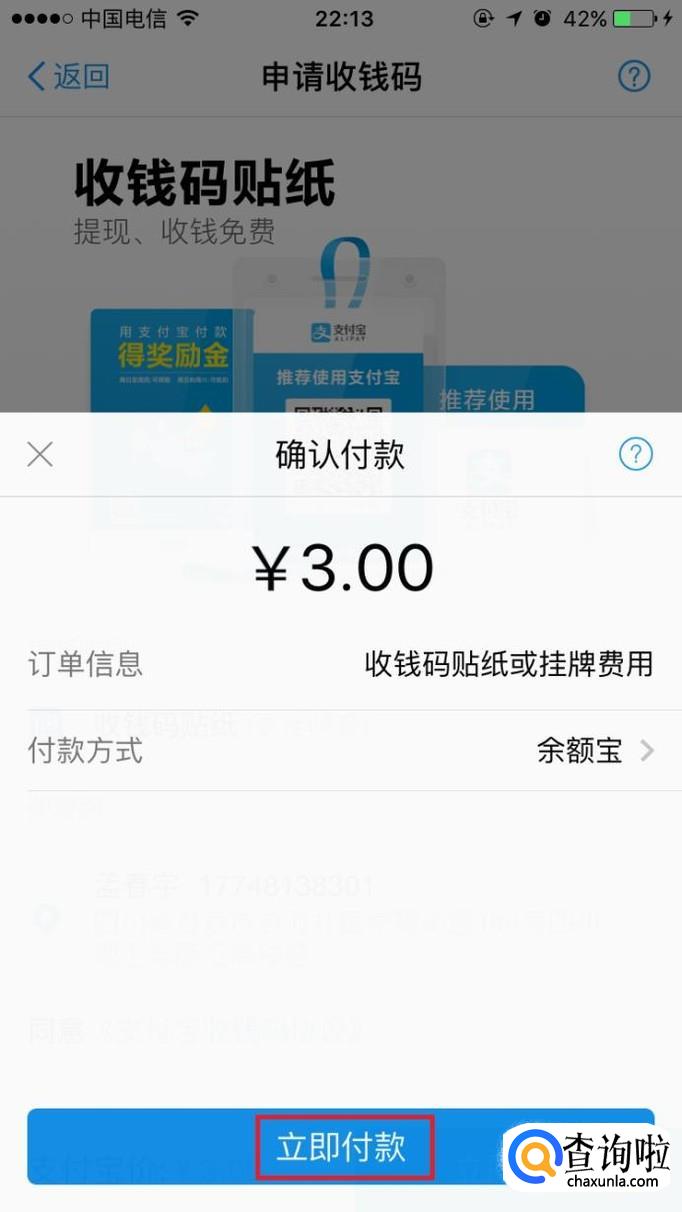 在弹出的付款页面点击“立即付款”。