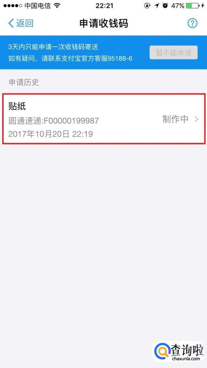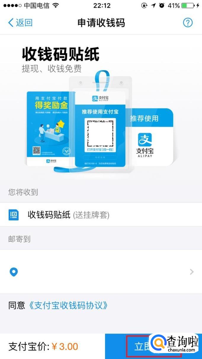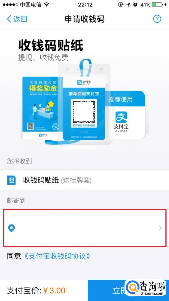 进入收钱码申请页面,点击“地址”。