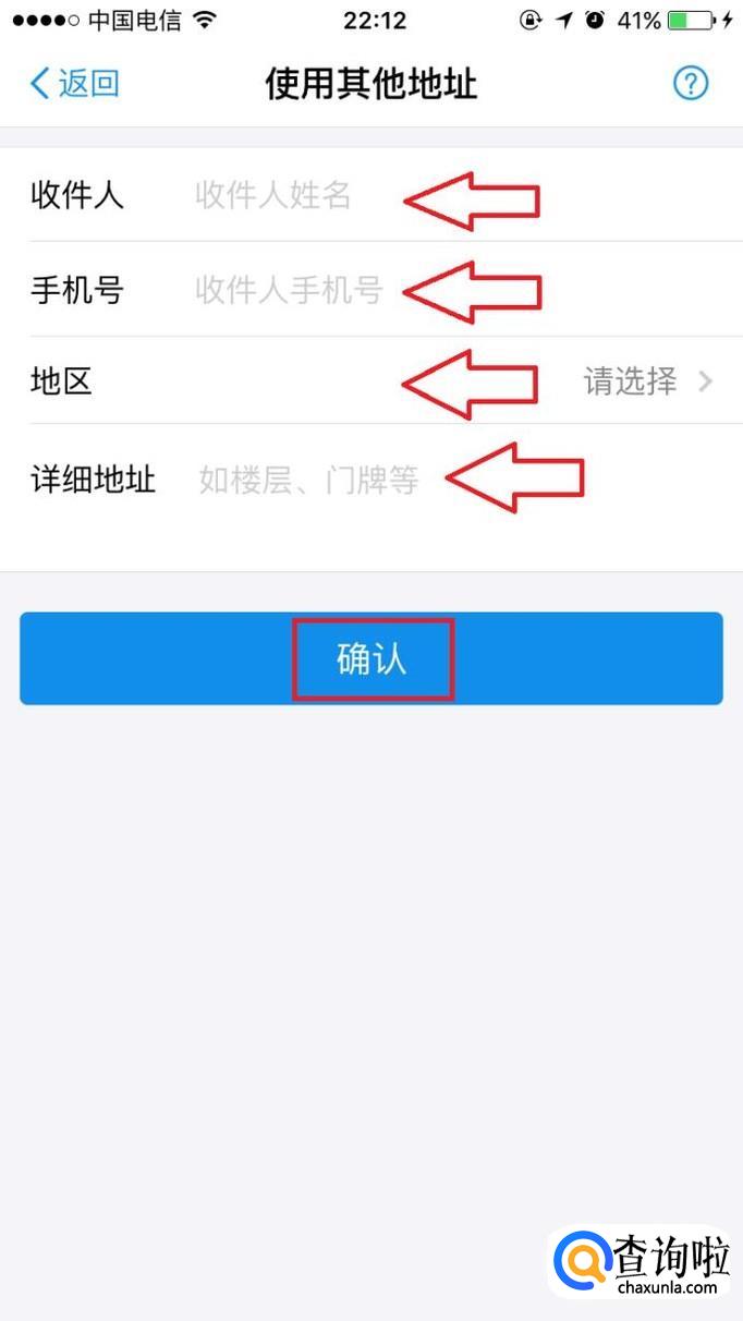 按要求输入自己的姓名、手机号码和地址,点击下方的“确认”。