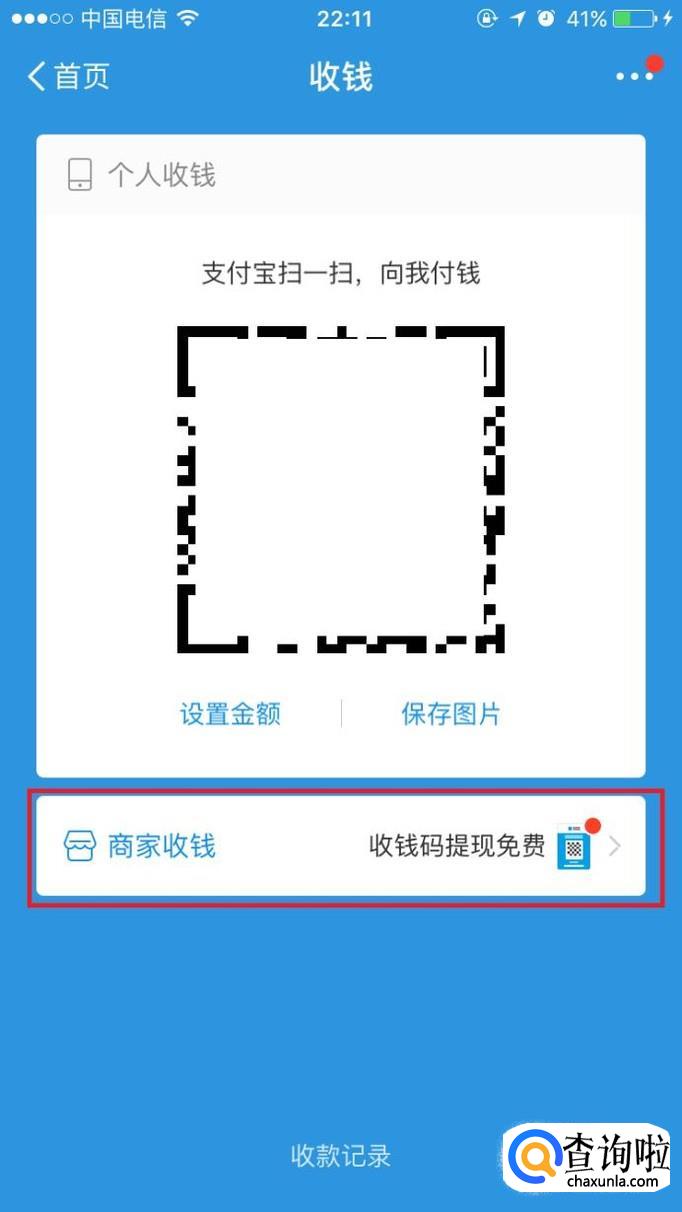 点击二维码下面的“商家收钱”。