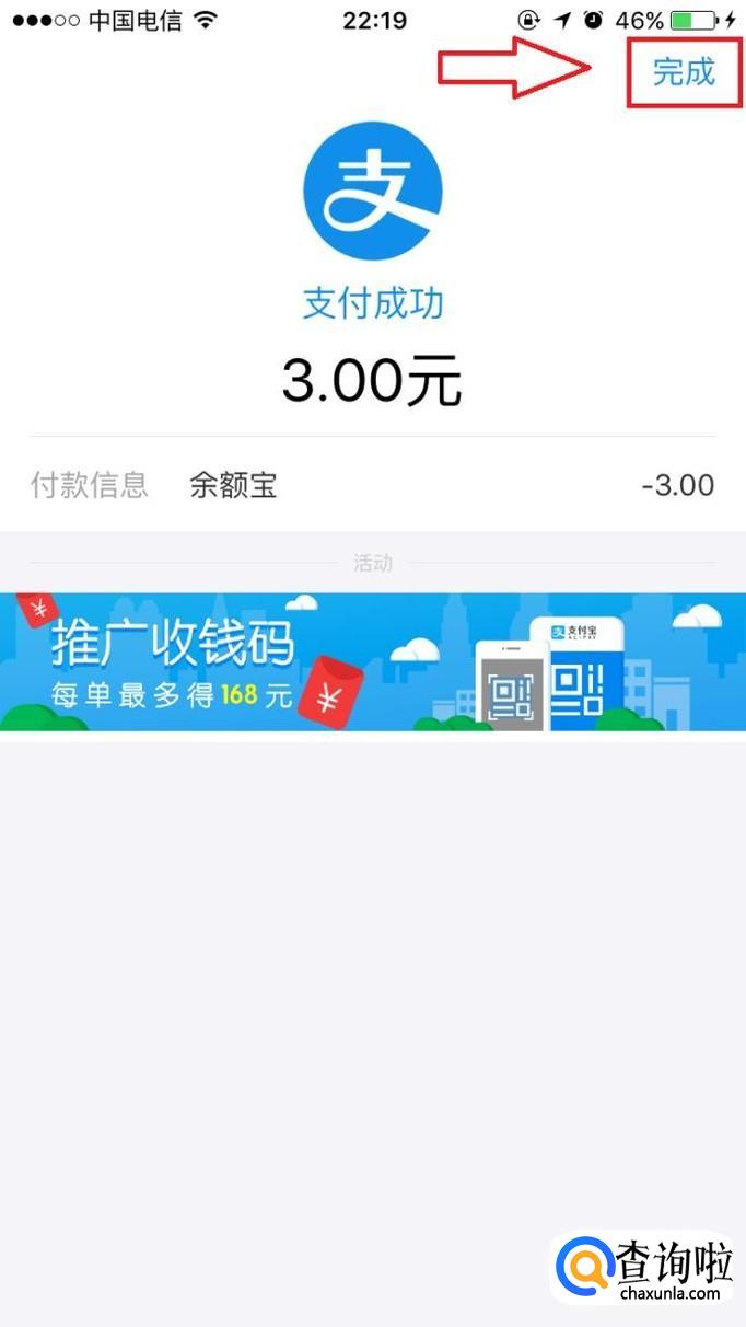 支付成功后,点击右上角的“完成”。
