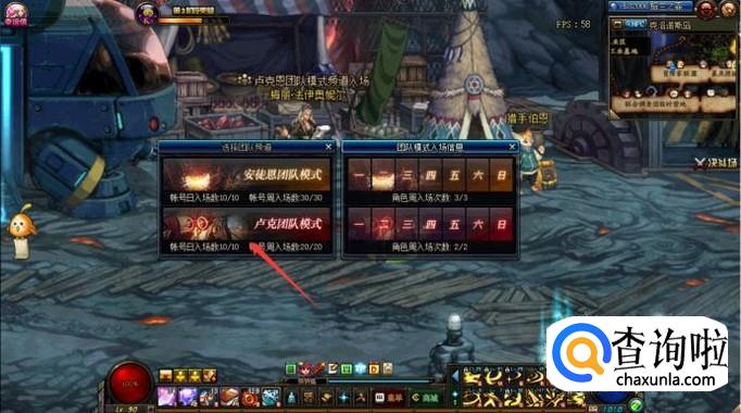 点击菜单,团队频道,卢克团队模式也可查看入场条件。