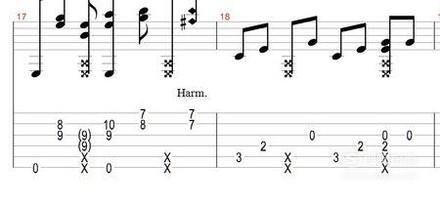 Harm:表示自然泛音。也就是俗称的打弦。自然泛音就是在空弦音为基音,在六等分以内的各等分点上演奏。小于第三品以上的泛音很不清晰响亮,通常不用。右手一般用食指弹奏,但也有用大拇指和无名指弹奏后迅速离开的。一般修函在结尾使使用。