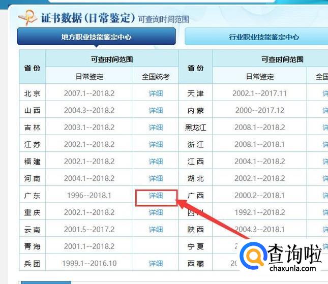 进入之后,找到“广东”,点击“详细”进入下一页面,如图所示。