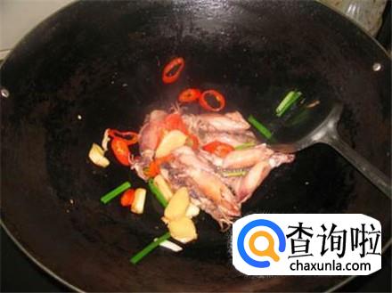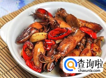 锅里倒油烧热,放入姜蒜片和葱段爆香,喜欢吃辣的放点干红辣椒,将鱿鱼筒放进去翻炒。
