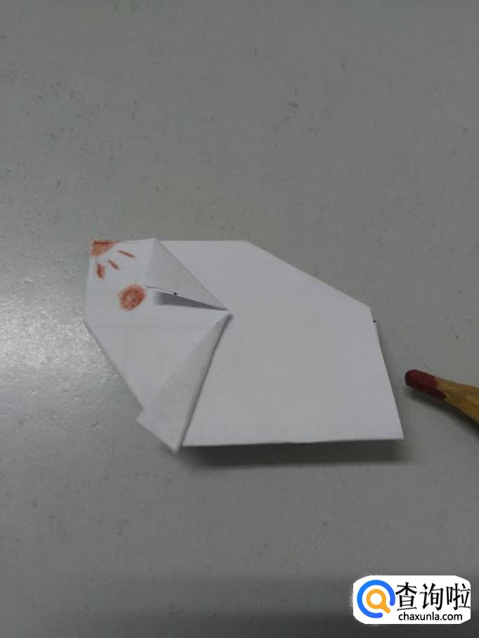 将中间下面的角向左折一个小角。